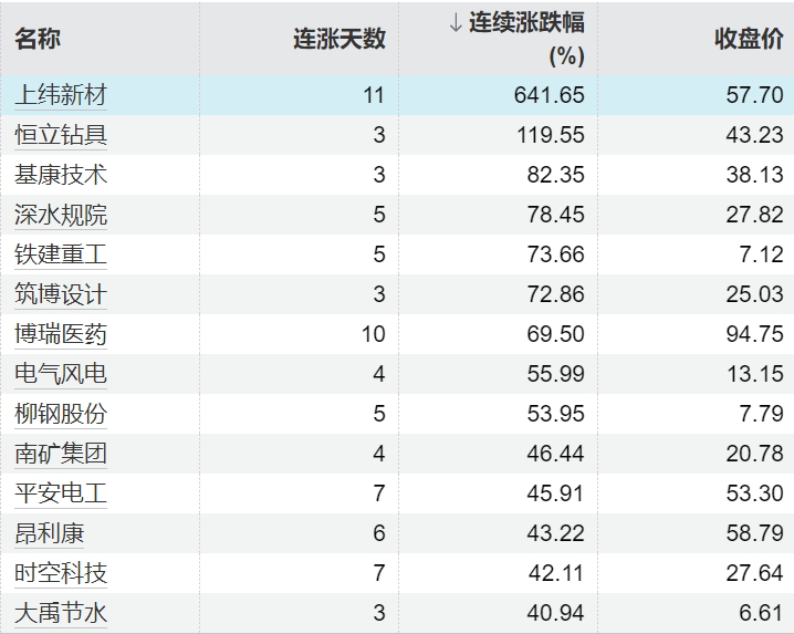 141只个股连续上涨5个交易日及以上141只个股连续上涨5个交易日及以上