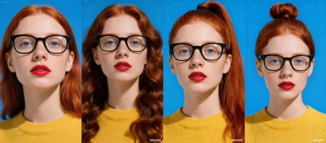 即使是更为复杂的任务,如更换人物发型,Seedream 4.0 也能在保证面部特征和气质一致性的基础上,流畅转换发型,发丝细节丰富,还避免了因局部修改导致的整体失真。