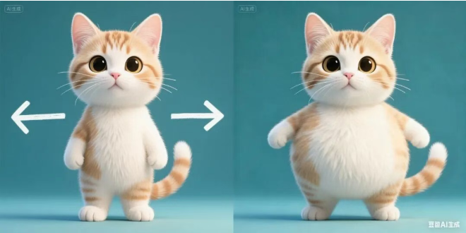 提示词:根据箭头方向改变小猫体型