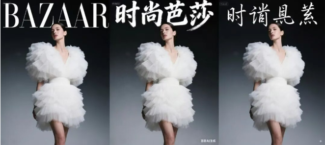 图 1 为原图;图 2 为 Seedream 4.0;图 3 为 Nano Banana。提示词:Change the text on the image to "时尚芭莎" in a handwritten style