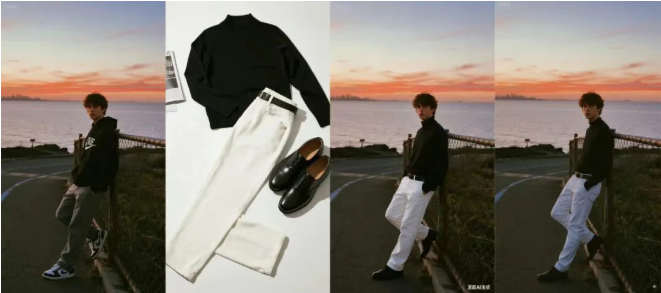 提示词:给图 1 模特穿上图 2 的穿搭