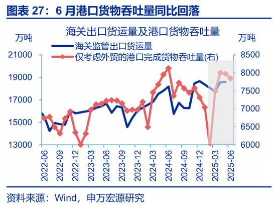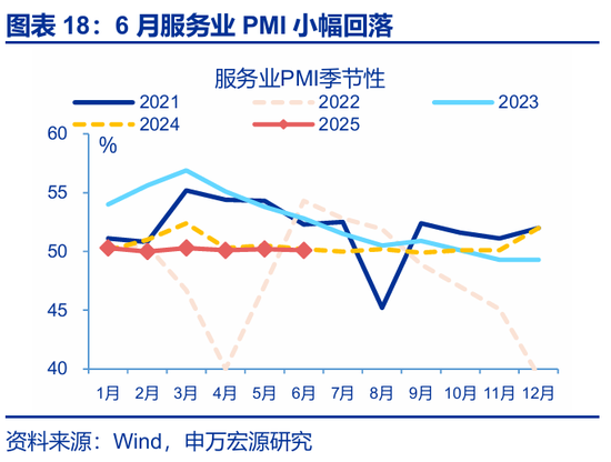 国内经济,聚焦服务业景气的接力与出口数据的验证。1)当前服务消费、服务业投资继续呈现持续修复特征,服务出口(入境游、文化出海)也在明显提速。且自5月以来,5000亿服务消费再贷款、准财政工具(政策性开发性金融工具)也在对服务业投资进行部署,民间投资也从制造业转向服务业,未来持续看好服务业“三驾马车”表现。2)高频指标显示,6月外贸货运量同比-3.8pct至-3.5%,说明“抢出口”的强度持续减弱,后续出口或有一定的回落压力。