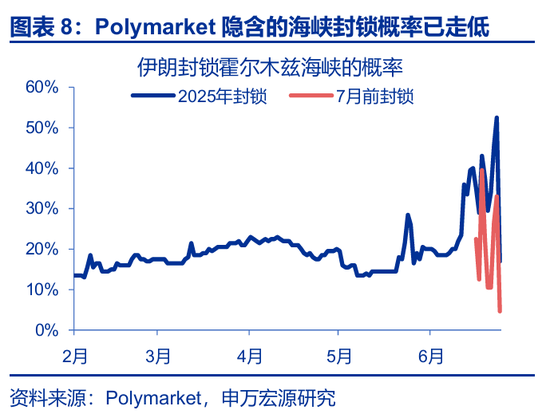 此外,伊以冲突一度引发市场的阶段性担忧,关税风暴虽再度来袭、但市场反应相对平淡。1)伊以冲突一度对市场有明显扰动。Polymarket隐含的伊朗2025年7月前、2025年年内封锁霍尔木兹海峡的可能性一度在6月23日触及33%和53%,但在6月24日伊以宣布停火后、已回落至5%和17%;前期大涨的金油价格共振下跌,均已跌至6月12日伊以冲突爆发前水平。2)关税调整带来的影响则相对平淡。7月7日,美国宣布提升14国关税,生效日期推迟至8月1日大盈家,或有意向谈判各方施压。但7月7日以来,标普500仅震荡微跌0.3%、美元汇率则反弹了0.9%。