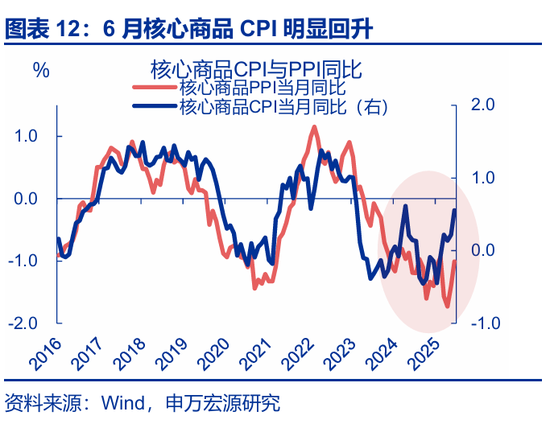 6月,国内经济呈现温和复苏态势、前期政策效果持续释放。1)电商促销前置等带动消费需求集中释放;5月社零增速创2024年以来新高。2)核心商品CPI明显回升,也反映了促消费政策刺激下国内需求的持续释放。3)6月制造业PMI超预期,结构上内需订单修复程度更快。