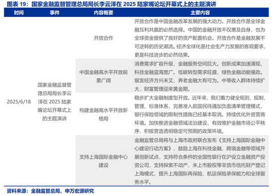 政策利好的继续加码与外部扰动的缓和,也创造了比较有利的市场环境。一方面,金融对外开放等政策进一步提振了市场情绪。6月18日,国家金融监督管理总局局长李云泽在2025陆家嘴论坛开幕式上发表主题演讲,他表示,开放合作中国金融改革发展的强大动力。另一方面,6月以来,中美间的贸易谈判仍在延续,近期特朗普针对美国对外逆差的主要经济体均提高了关税税率、但对中国的关税政策未进一步加码;同时,弱美元的背景下,人民币汇率也在逐步走强。