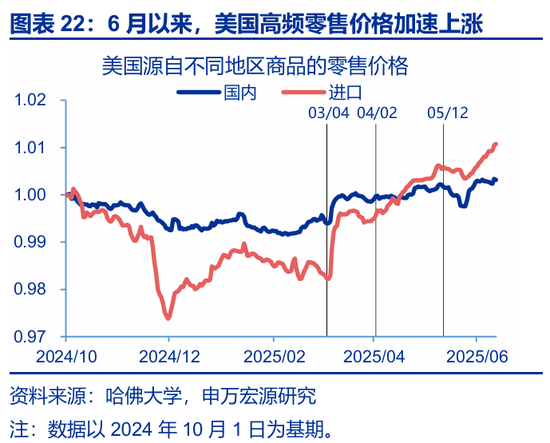 海外通胀压力或率先显现,导致降息预期的阶段性后置。前期关税征收滞后、企业“抢进口”此类“暂时性”因素阻碍了关税对通胀的传导。展望下半年,多项证据指向美国通胀或逐步进入上行区间。1)自6月以来,美国高频零售价格出现加速上涨的迹象;2)各类联储调查的制造业价格指数指向美国商品通胀上行压力可能较大。3)根据纽约联储调查,多数美国企业表示会在关税成本压力显现后的1-3个月内涨价。此外,8月1日前,特朗普施压下主要经济体的贸易谈判也值得关注。