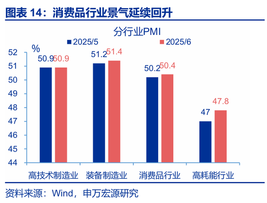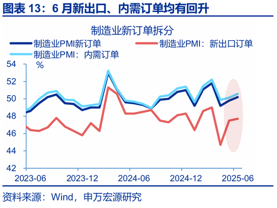 明显回升,也反映了促消费政策刺激下国内需求的持续释放。3)6月制造业PMI超预期,结构上内需订单修复程度更快。此外,政策利好的加码与外部扰动的缓和,也创造了比较有利的市场环境。