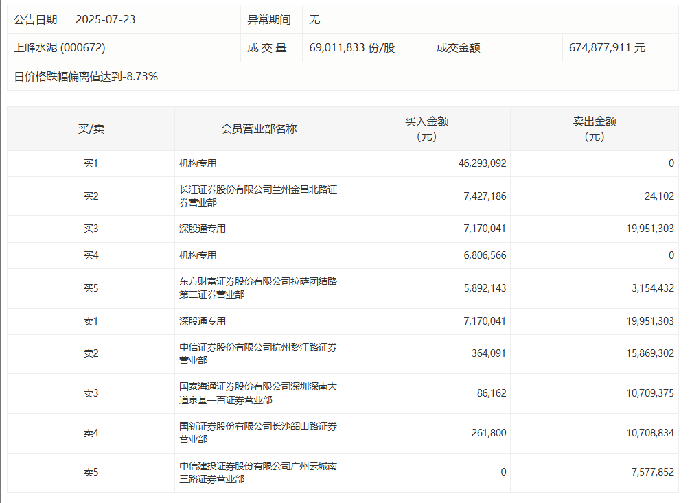 上峰水泥跌超9% 两机构席位合计买入5309.97万元捷希源配资上峰水泥跌超9% 两机构席位合计买入5309.97万元