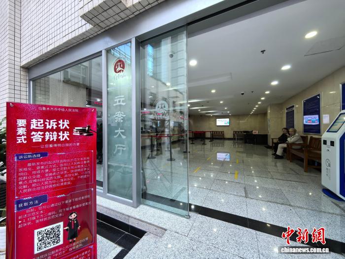9月15日,记者随最高人民法院新闻局赴新疆采访,图为乌鲁木齐市中级人民法院立案大厅。中新社记者 张素 摄