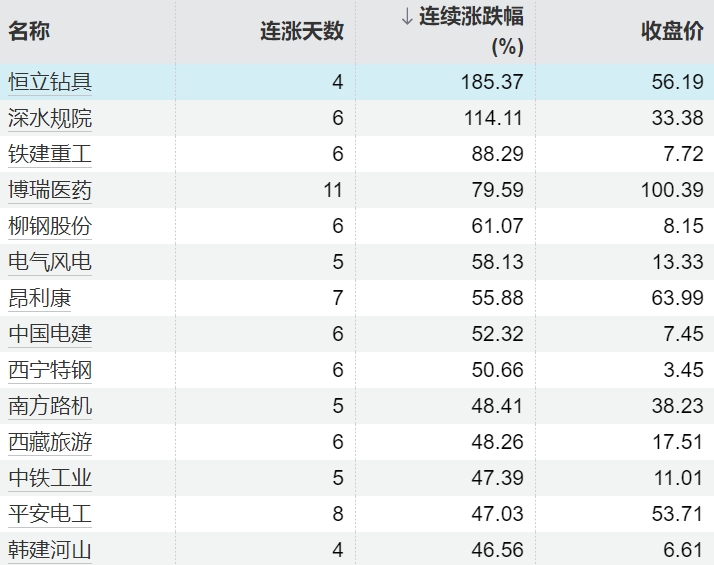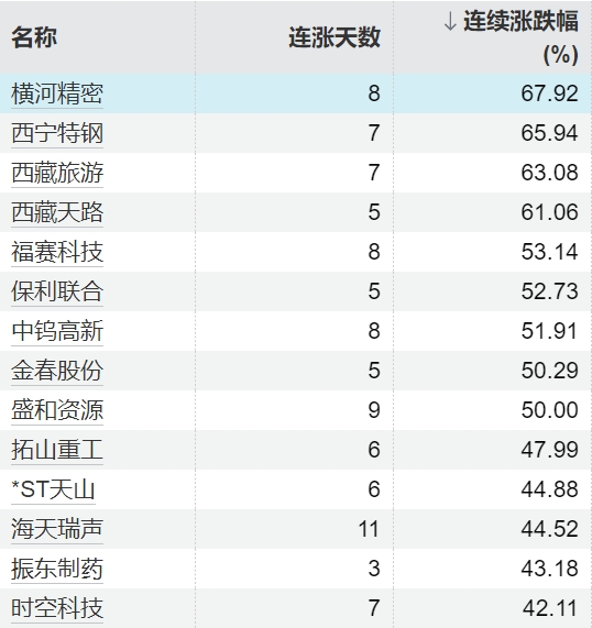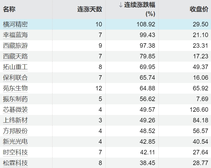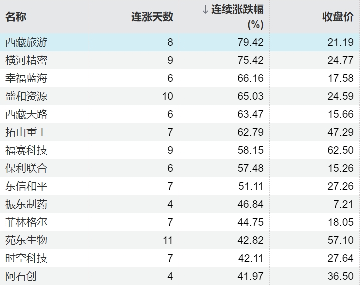 114只个股连续上涨5个交易日及以上114只个股连续上涨5个交易日及以上